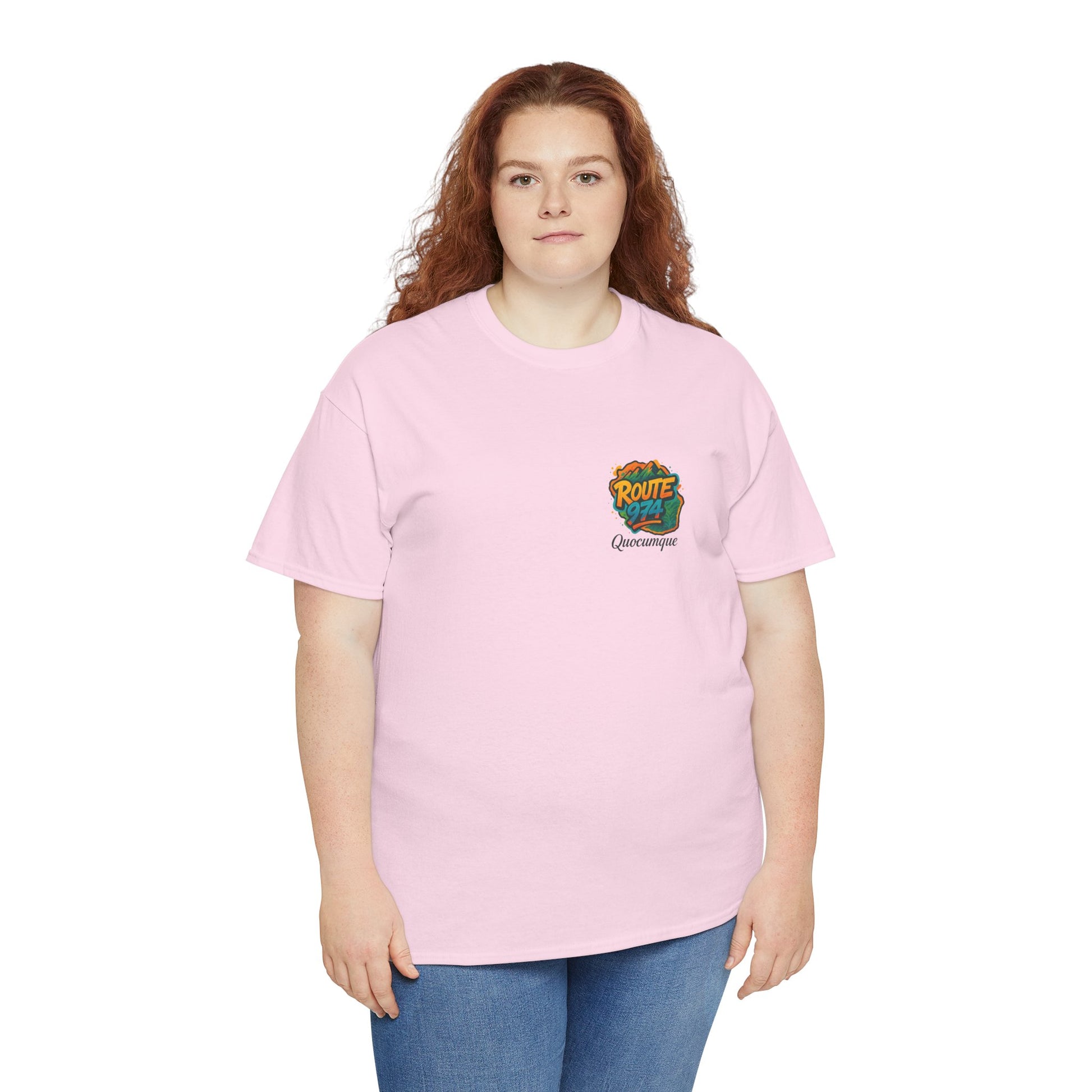 T-shirt "Route 974 Montagne", Destination Île de La Réunion, Confort Coton, Sobre, Elégant, Souvenir Unique, Cadeau, Unisexe, Esprit Voyageur