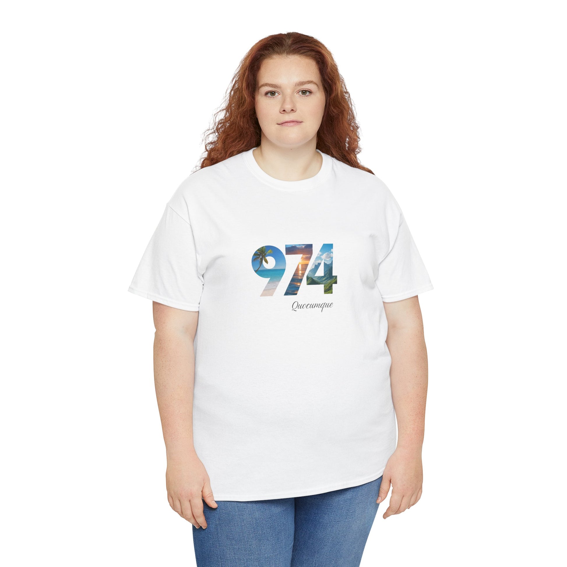 T-shirt "974", Île de La Réunion, Confort Coton, Sobre, Elégant, Souvenir Unique, Cadeau, Unisexe, Esprit Voyageur