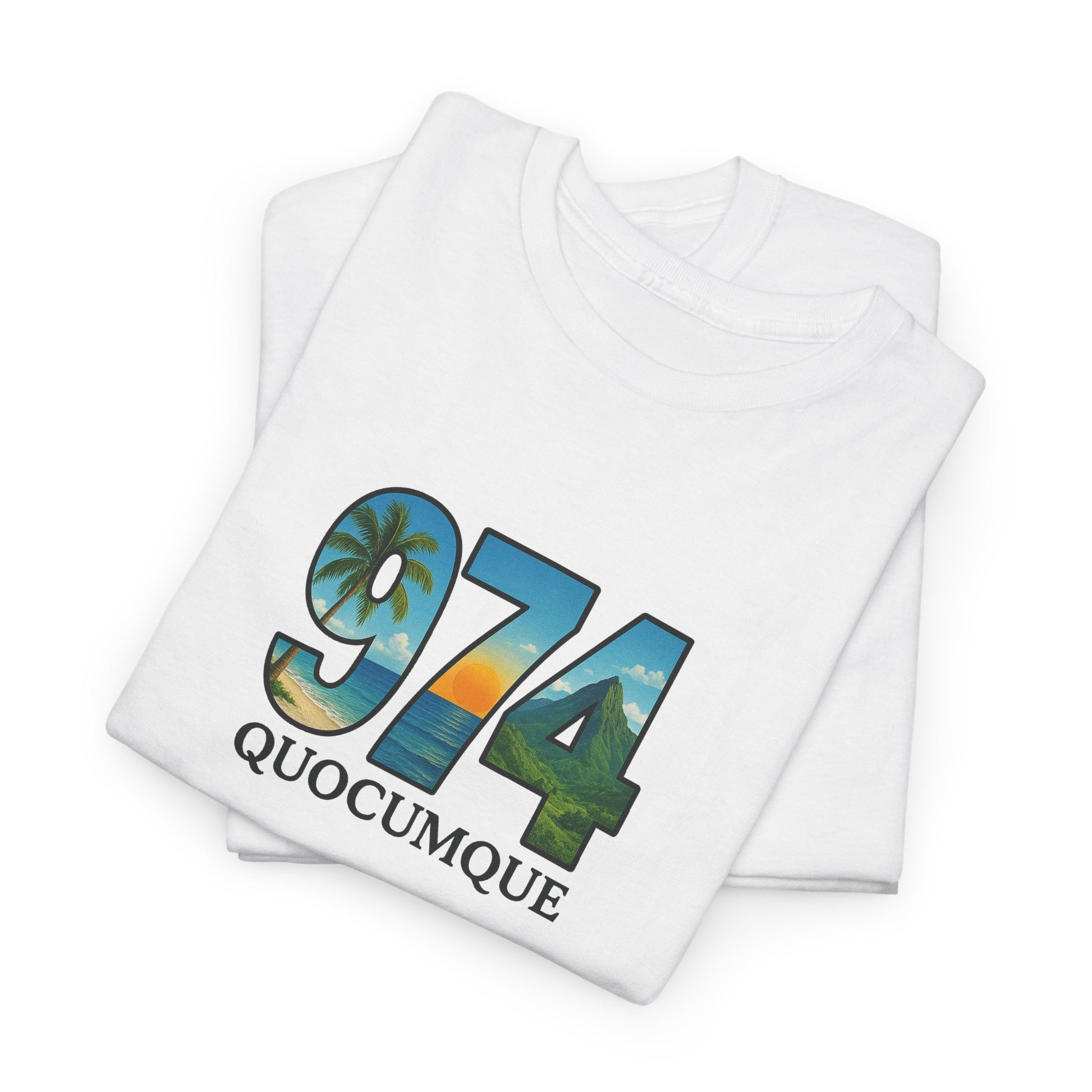 T-shirt "974", Île de La Réunion, Confort Coton, Sobre, Elégant, Souvenir Unique, Cadeau, Unisexe, Esprit Voyageur