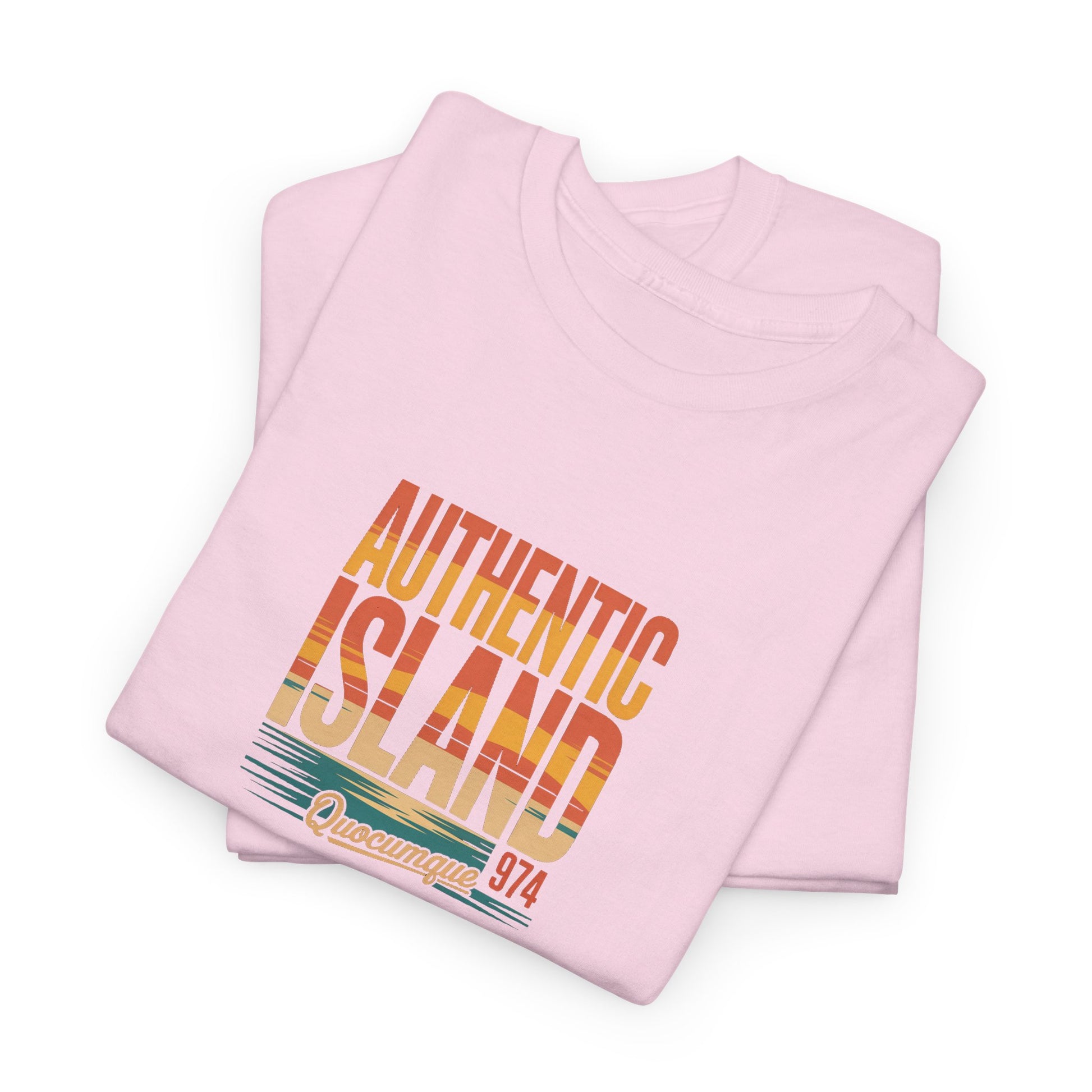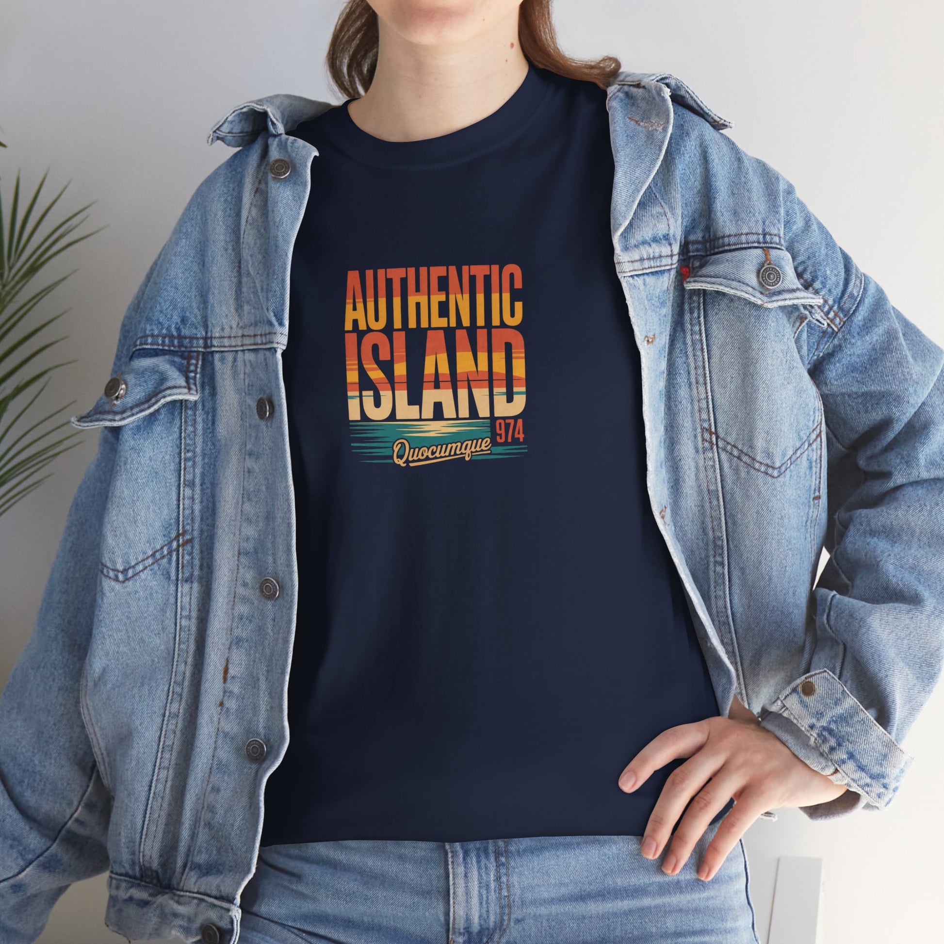 T-shirt "Authentic Island", Exotisme, Destination Île de La Réunion, Confort Coton, Sobre, Elégant, Souvenir Unique, Cadeau, Unisexe, Esprit Voyageur
