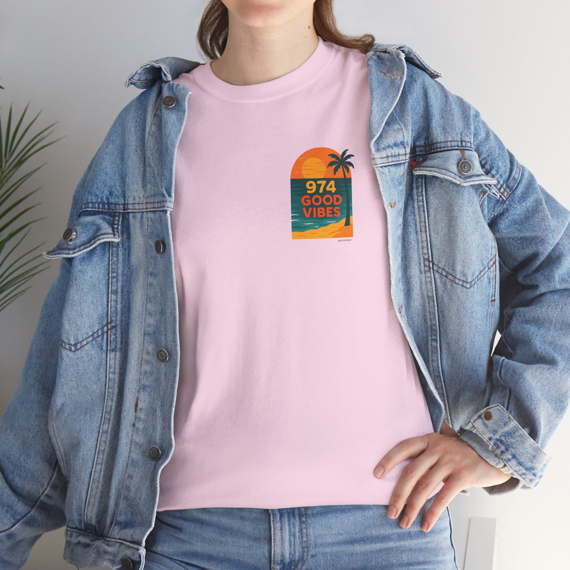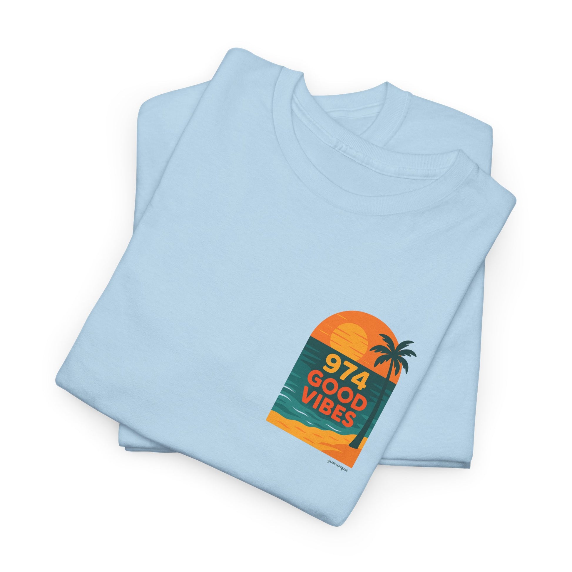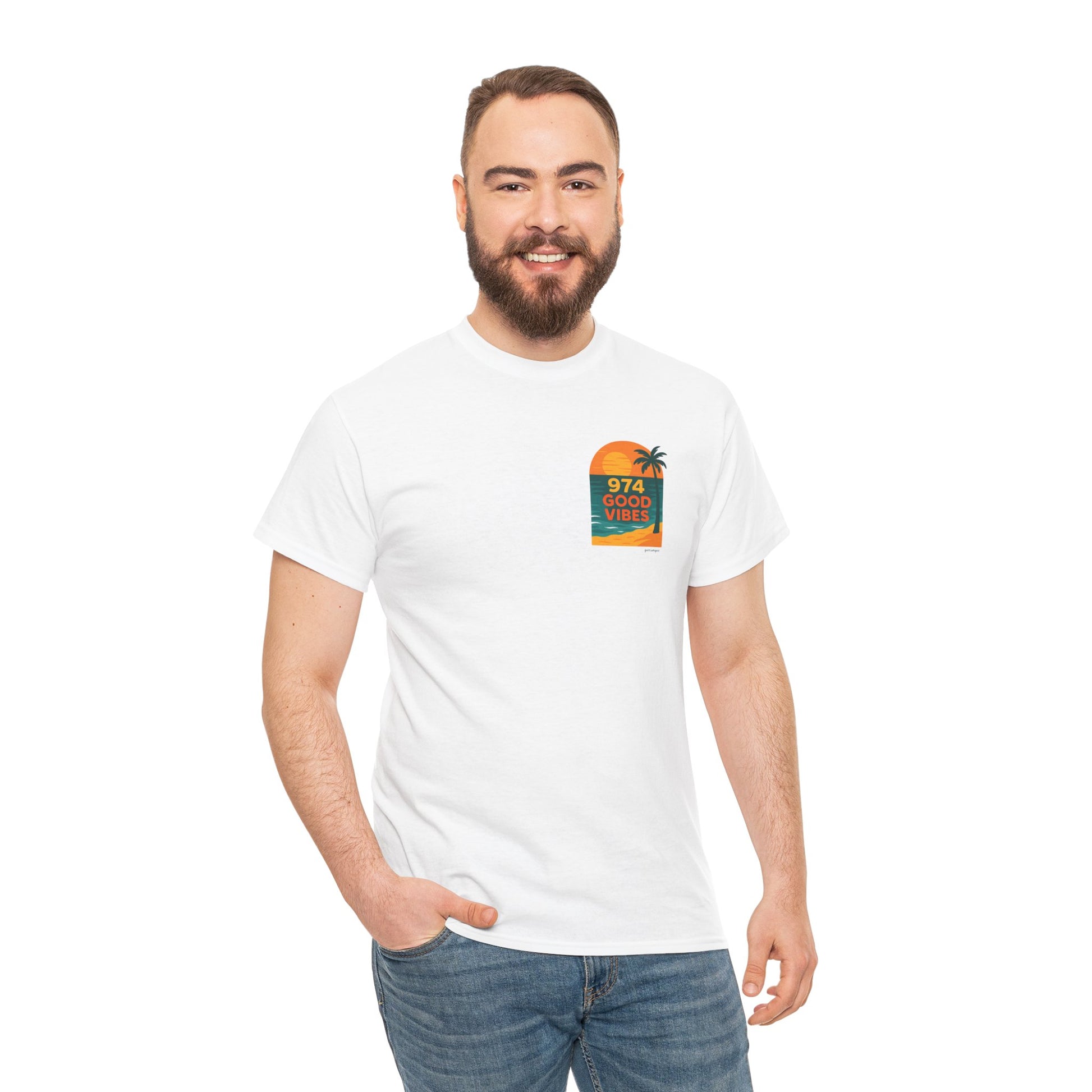 T-shirt "Good Vibes", Île de La Réunion, Confort Coton, Sobre, Elégant, Souvenir Unique, Cadeau, Unisexe, Esprit Voyageur, Adulte