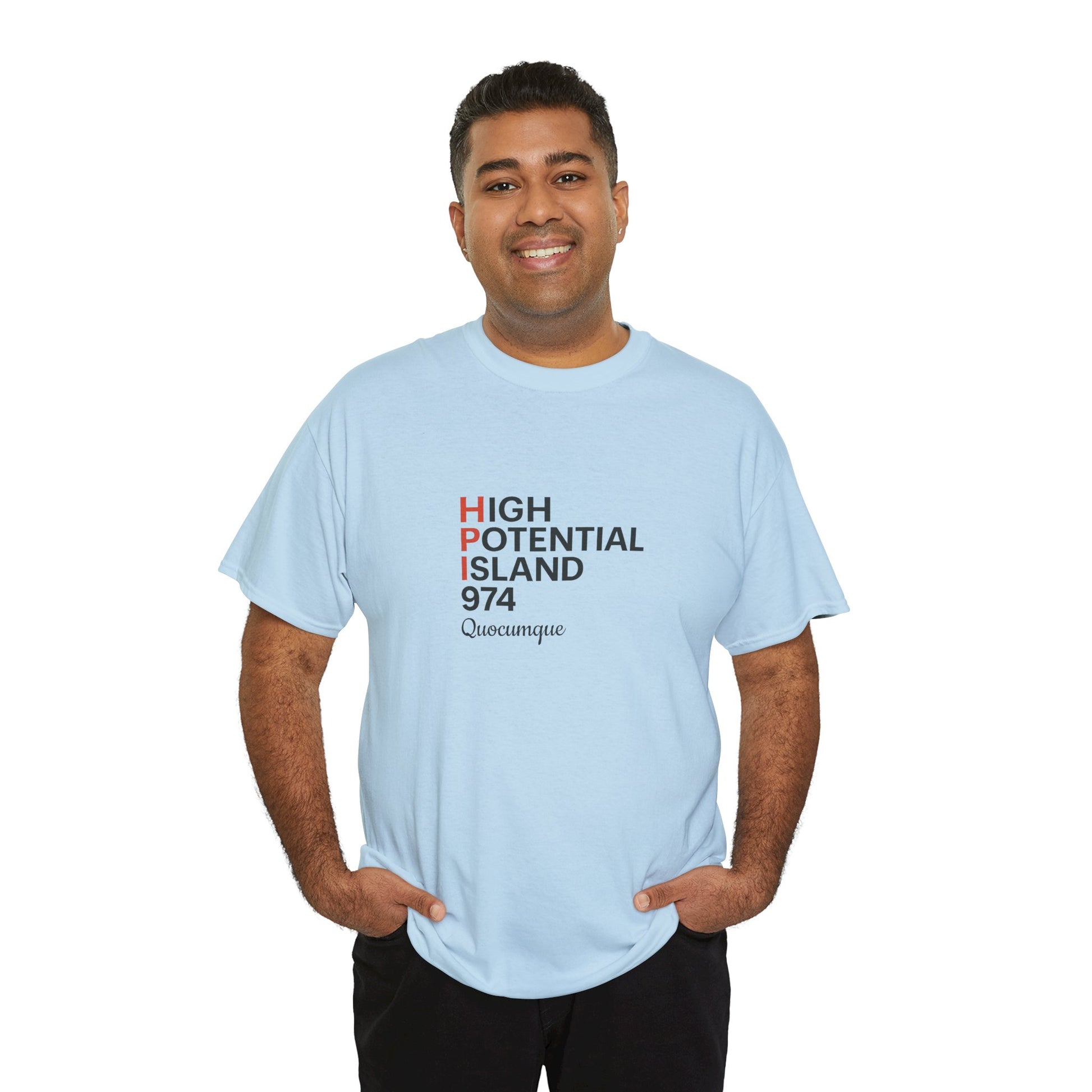 T-shirt "HPI anglais", Exotisme, Destination Île de La Réunion, Confort Coton, Sobre, Elégant, Souvenir Unique, Cadeau, Unisexe, Esprit Voyageur