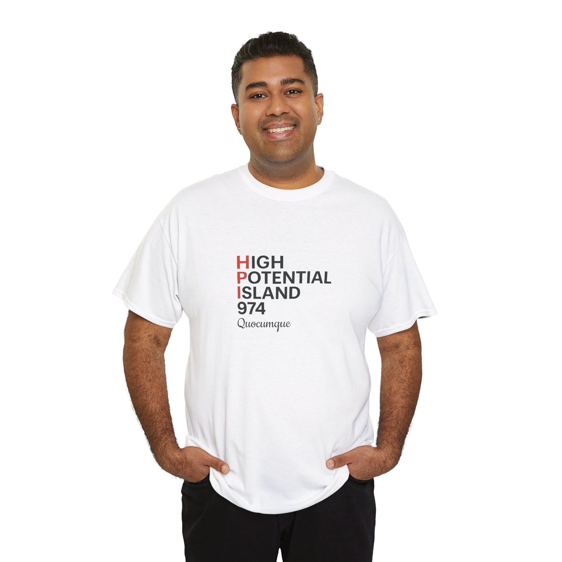 Découvrez l'essence même du confort avec notre T-shirt "HPI", version anglaise, imaginé pour ceux qui portent en eux l'esprit de La Réunion. Ce T-shirt est plus qu'un vêtement, c'est un étendard de l'identité et du patrimoine d'une île captivante.