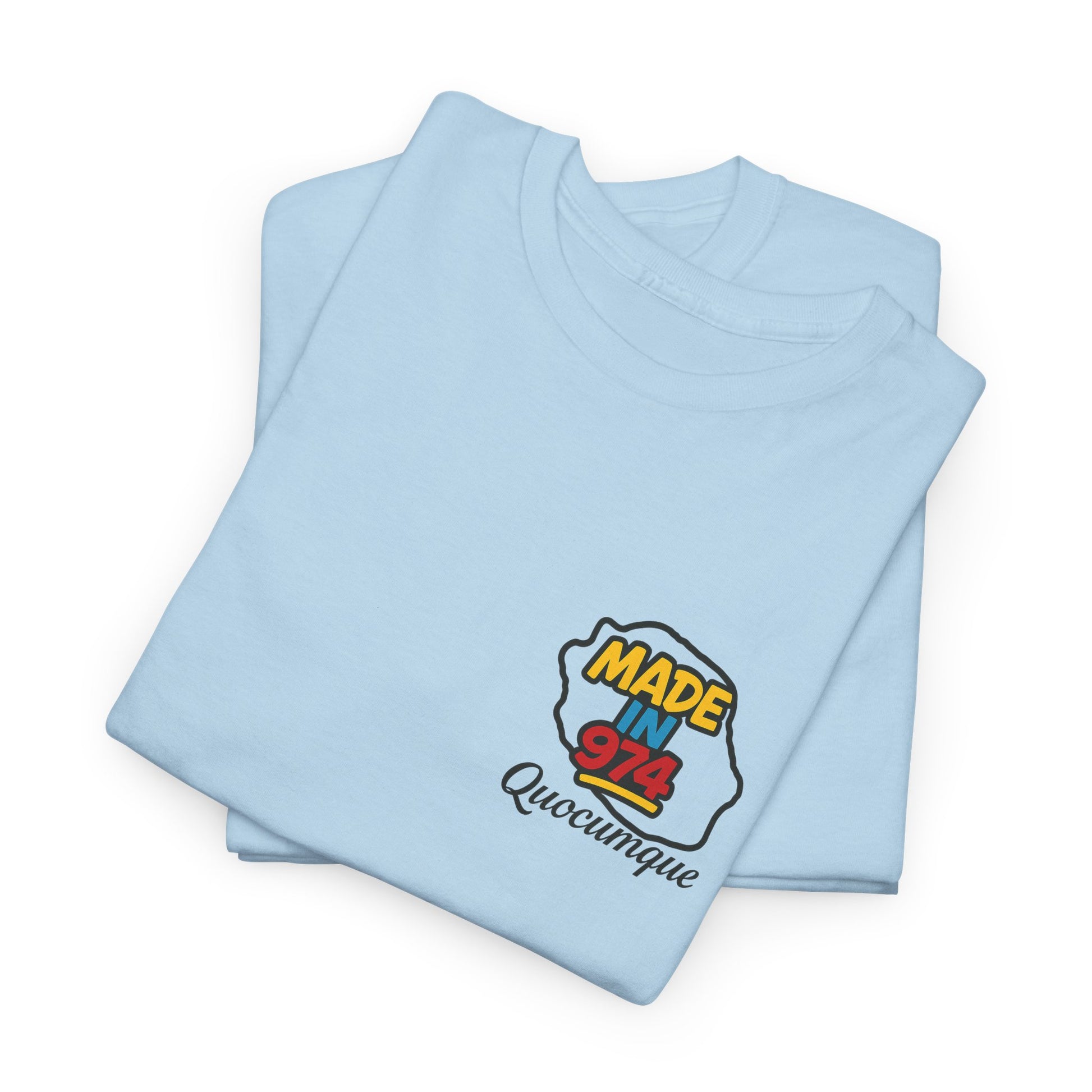 T-shirt "Made in 974", Exotisme, Destination Île de La Réunion, Confort Coton, Sobre, Elégant, Souvenir Unique, Cadeau, Unisexe, Esprit Voyageur