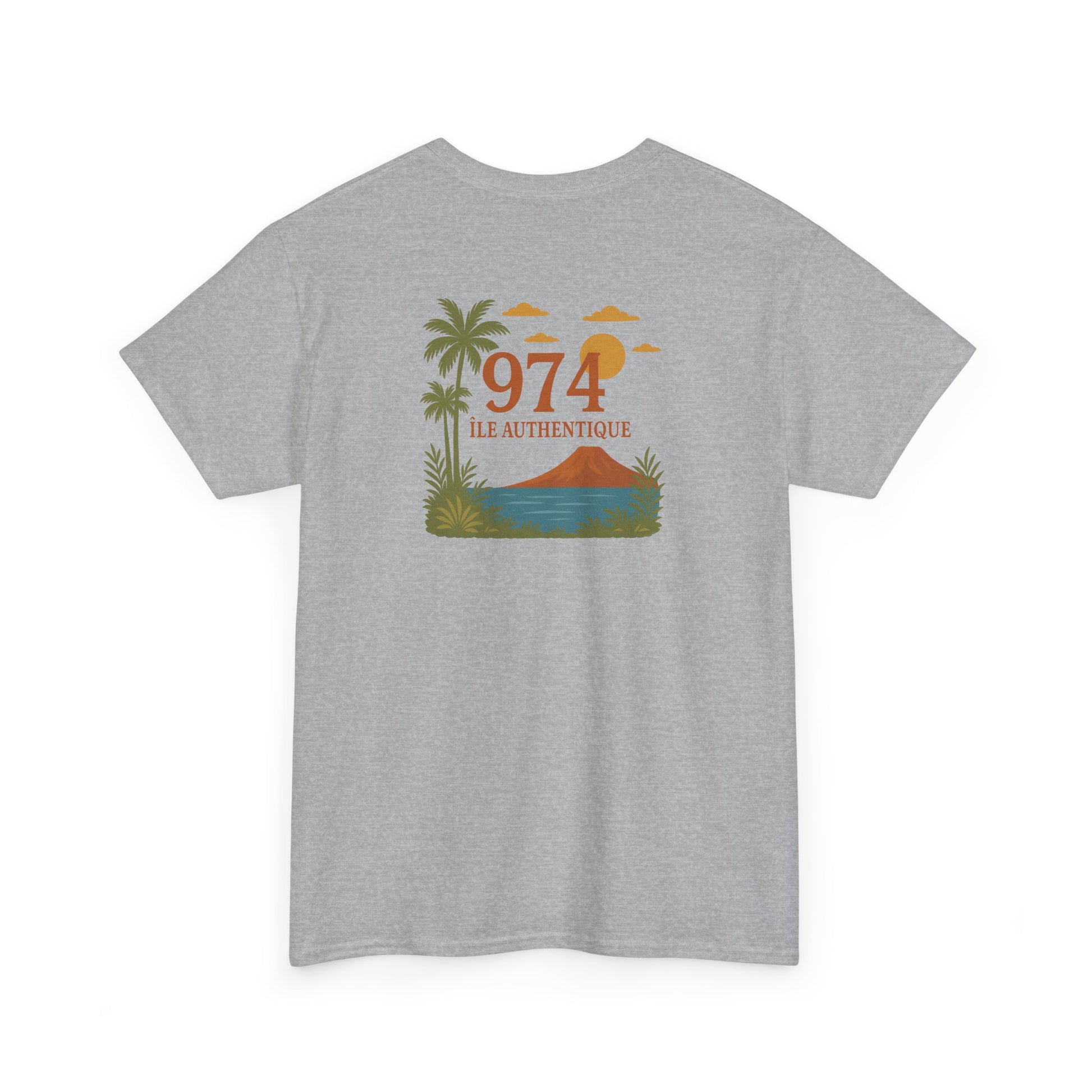 T-shirt "974 Île Authentique", Exotisme, Destination Île de La Réunion, Confort Coton, Sobre, Elégant, Souvenir Unique, Cadeau, Unisexe, Esprit Voyageur