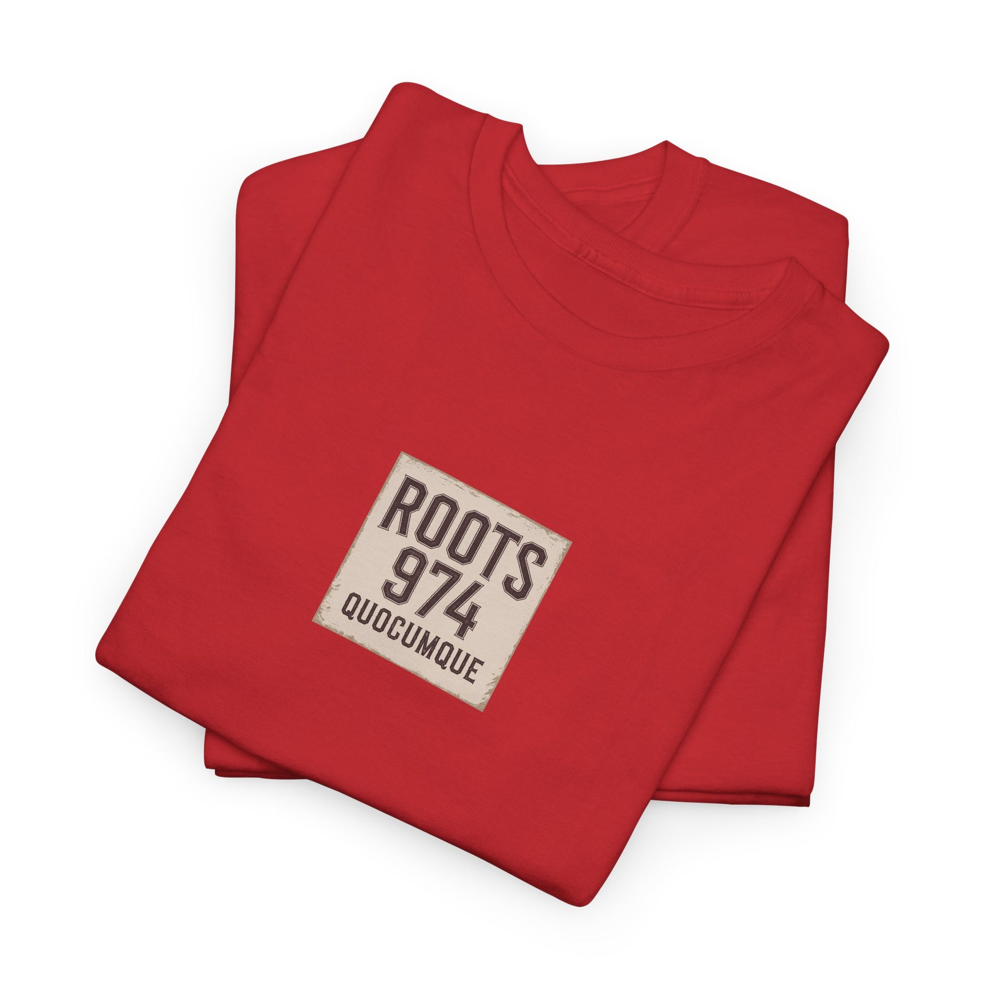 T-shirt "Roots 974", Exotisme, Destination Île de La Réunion, Confort Coton, Sobre, Elégant, Souvenir Unique, Cadeau, Unisexe, Esprit Voyageur