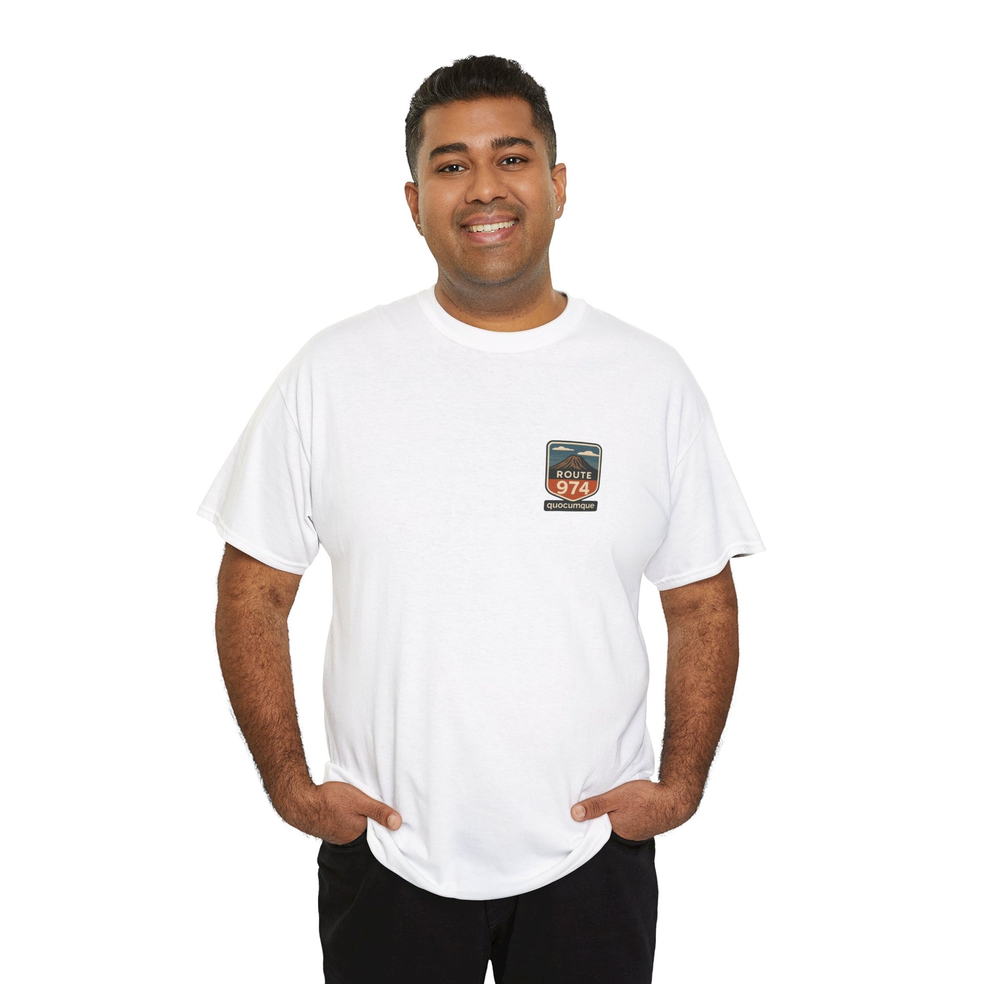 T-shirt "Route 974", Volcan, Exotisme, Destination Île de La Réunion, Confort Coton, Sobre, Elégant, Souvenir Unique, Cadeau, Unisexe, Esprit Voyageur