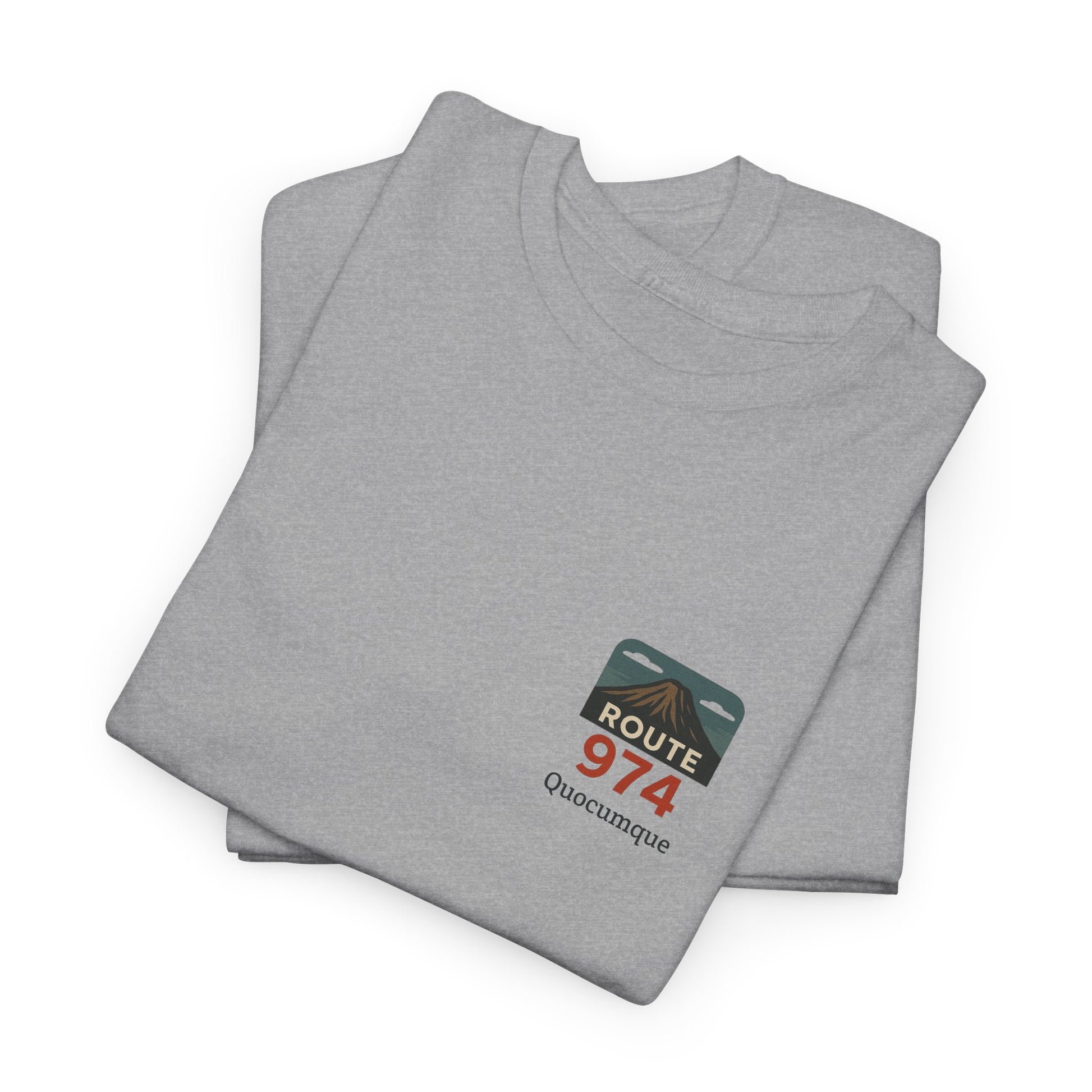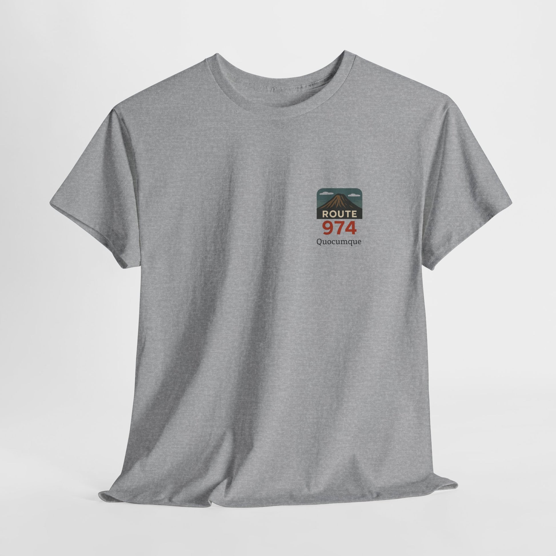T-shirt "Route 974", Volcan, Exotisme, Destination Île de La Réunion, Confort Coton, Sobre, Elégant, Souvenir Unique, Cadeau, Unisexe, Esprit Voyageur